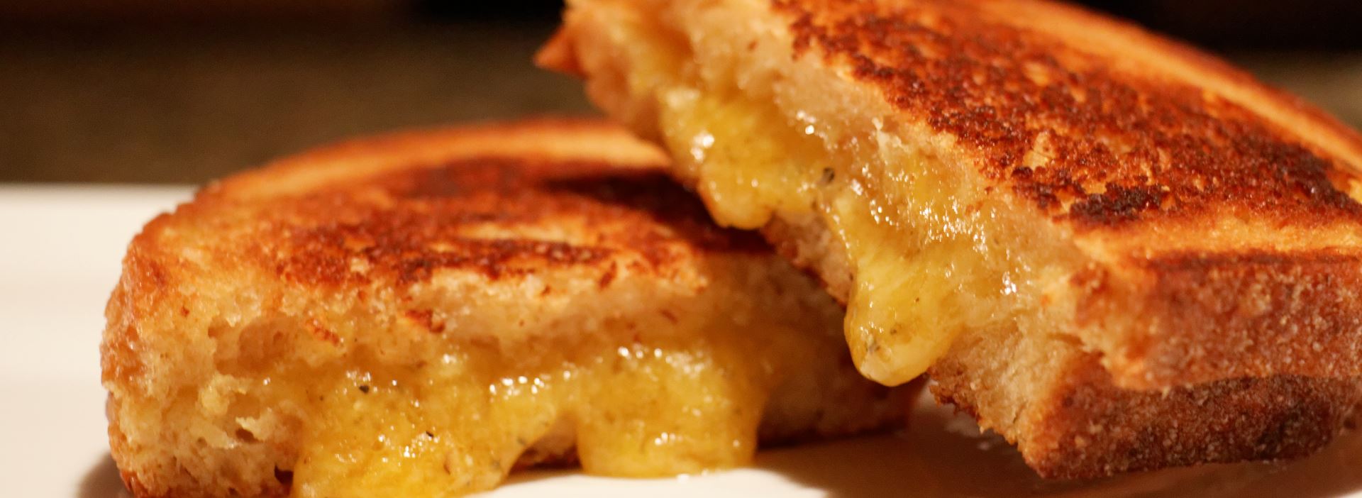 Grilled cheese using queso manchego and an aged applewood smoked cheddar, enhanced with fresh garlic, egg yolk and cracked black pepper.
