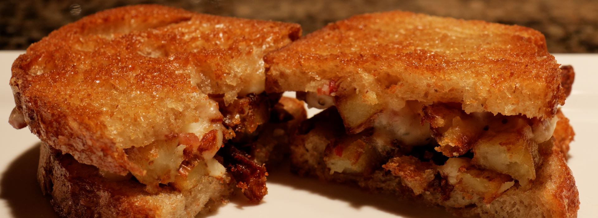 Bacon poutine melt with Yukon Gold potatoes, cheese curds and a peppered bacon gravy.