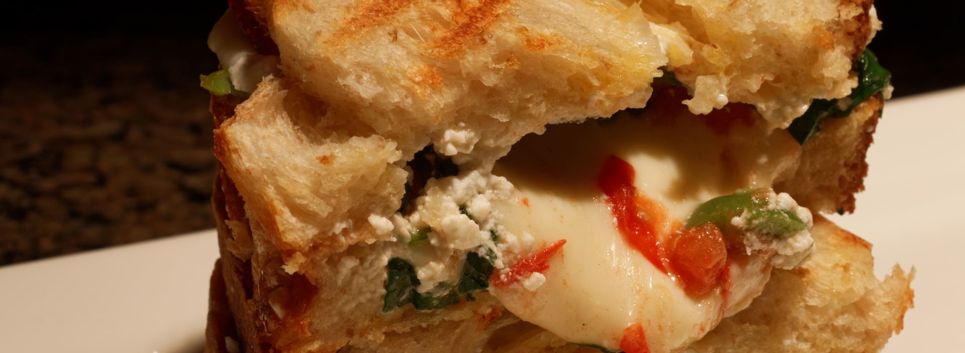 Mediterranean inspired feta and mozzarella melt on sourdough, paired with spinach, roma tomatoes and Italian Castelvetrano olives.